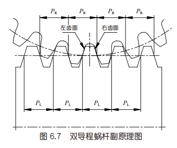 圖6.7示意了雙導程蝸輪蝸桿副的原理。