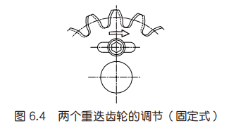 將兩個重疊齒輪相互的輪齒相位關系調整固定,使側隙減小。原理示意在圖6.4中。