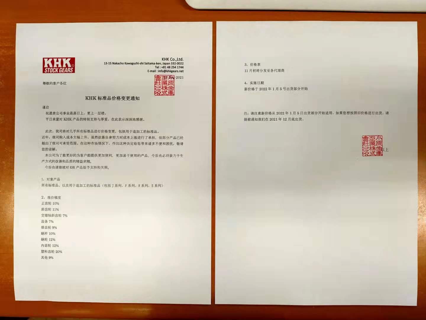 KHK標(biāo)準(zhǔn)品 價(jià)格 變更通知