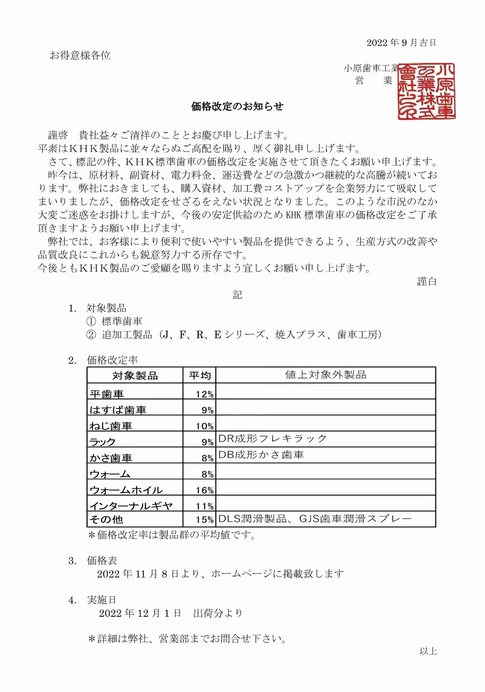 此次,KHK公司將對幾乎所有標(biāo)準(zhǔn)品進(jìn)行價格變更,包括 用于追加工的標(biāo)準(zhǔn)品 。